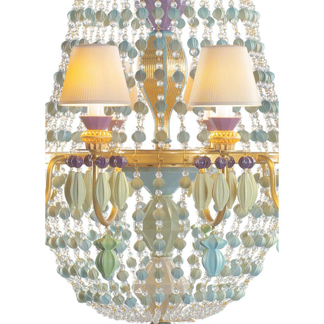 LLADRO' Chandelier Winter Palace 6 Luci Lustro Oro 115x70cm Porcellana