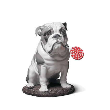 LLADRO' Figurina Cane Bulldog con Leccalecca 33x33cm Porcellana