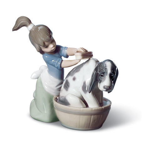 LLADRO' Figurina Il Bagno Del Cane 12x14cm Porcellana