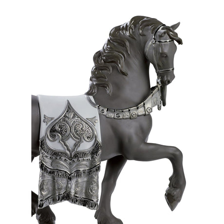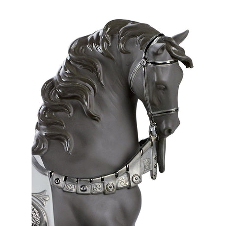 LLADRO' Scultura Cavallo Cortigiano Lustro Argento 42x40cm Porcellana
