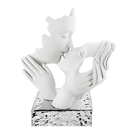 BONGELLI PREZIOSI - Statua Figura Moderna Coppia Face Bianco Argento 14x11cm Marmorino