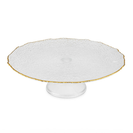LA PORCELLANA BIANCA Maestà Alzata Piatto Torta con Piede Filo Oro 33cm Vetro