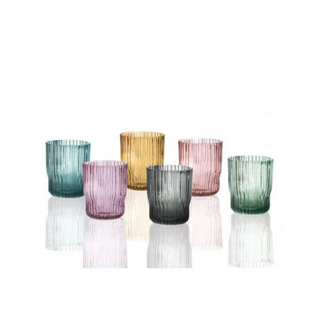 BRANDANI Plisse Set 6 Pezzi Bicchieri Colorati Assortiti 250ml Vetro