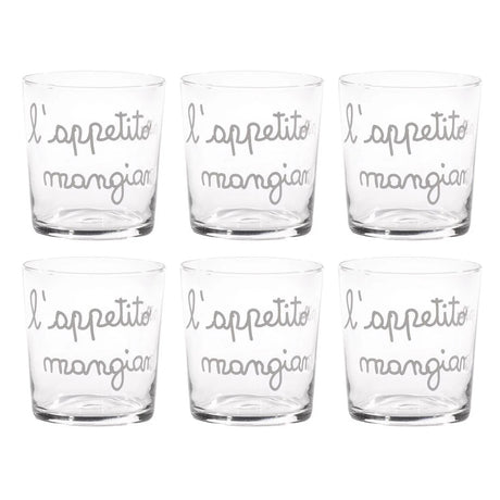 SIMPLE DAY Bicchieri Acqua L'Appetito Vien Mangiando Set 6 Pezzi 355ml Vetro