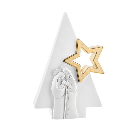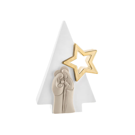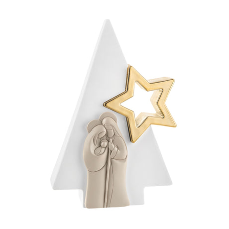 BONGELLI PREZIOSI Presepe Natività con Albero 15cm Bianco e Oro Decorazione Natalizia