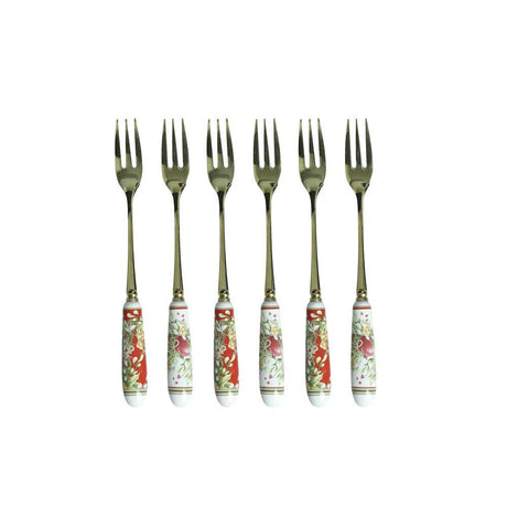 BRANDANI Carol Forchettina da Dolce Natalizia Set 6 Pezzi 15,5cm Ceramica e Acciaio Inox
