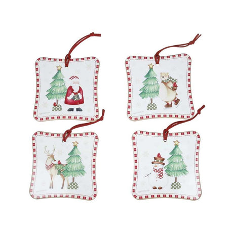 BRANDANI Racconti Decorazione Sottopentola Natalizio Set 4 Pezzi 11x10cm Ceramica Sughero