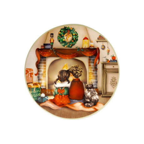 BRANDANI Cuccioli Piattino Natalizio Bimba al Caminetto 30cm Porcellana
