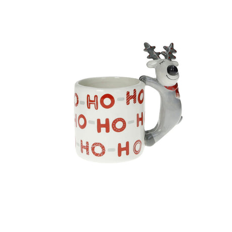 BRANDANI Ho-Ho-Ho Tazza Mug con Renna Grigia 13x14cm Tavola di Natale