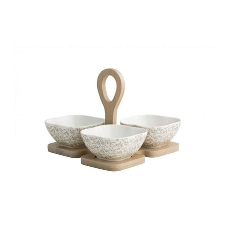 BRANDANI Antipastiera Riccioli di Fata Set 3 Pezzi Porcellana Bamboo 53162