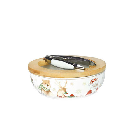 BRANDANI Racconti Ciotola Porta Noci Natalizia con Schiaccianoci 19,5cm Porcellana