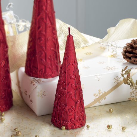 MASCAGNI CASA Candela Cono Decorata 15cm Decori in Rilievo Rosso