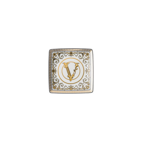 VERSACE Virtus Gala White Coppetta Ciotola Coppa Quadrata 12cm Porcellana Bianco Oro