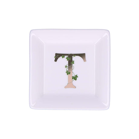 LA PORCELLANA BIANCA - Adorato Piattino Quadrato Lettera "T" 10cm