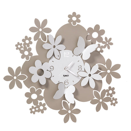 ARTI & MESTIERI Orologio da Parete Particolare con Fiori Daisy Fango E Avorio