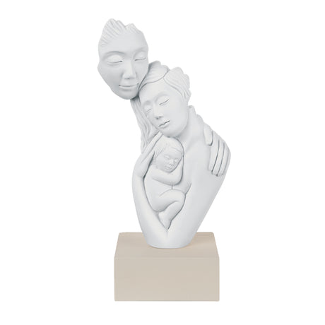 BONGELLI PREZIOSI Figura Statua Moderna Famiglia Nascita 27cm Bianco Base Nocciola Marmorino