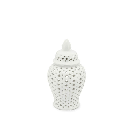 ABHIKA Vaso Ming Cross Potiche Orientale 28cm Bianco Ceramica