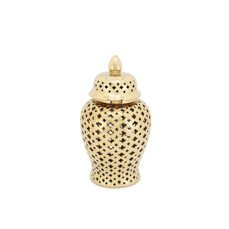 ABHIKA - Vaso Ming Cross Decorazione Ingresso Salone H38cm D20cm Ceramica Oro