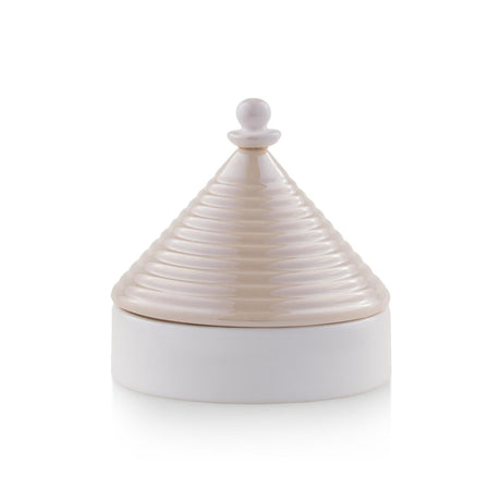EMÒ ITALIA Scatola Portaoggetti con Coperchio Trullo Pugliese Avana Bianco Ceramica 12 cm