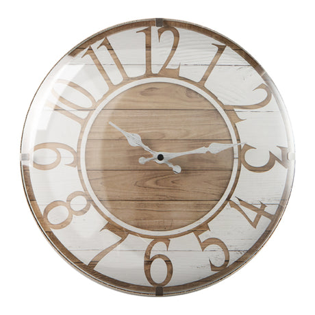 MONTEMAGGI Orologio Parete Vetro Lenticolare Fascia Bianca Base Listoni 29cm