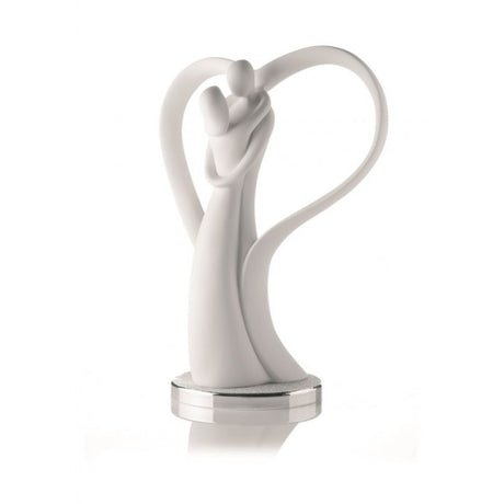 BONGELLI PREZIOSI - Statua Figura Innamorati Cuore Bianco 21cm Marmorino Base Argento