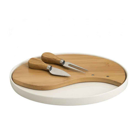 BRANDANI Tagliere Porcellana Bamboo 28x21,5cm Coltelli Formaggi Acciaio Inox