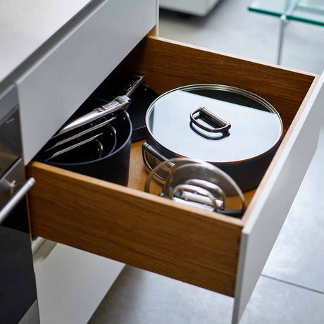 JOSEPH JOSEPH Pentola Alta con Manici Pieghevoli e Coperchio Space 25cm Ceramica Antiaderente Blu