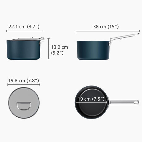 JOSEPH JOSEPH Pentola con Manico Pieghevole e Coperchio Space 19cm Ceramica Antiaderente Blu