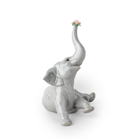 LLADRO' Figurina Elefante BebE' con Fiore Rosa 14x12cm Porcellana