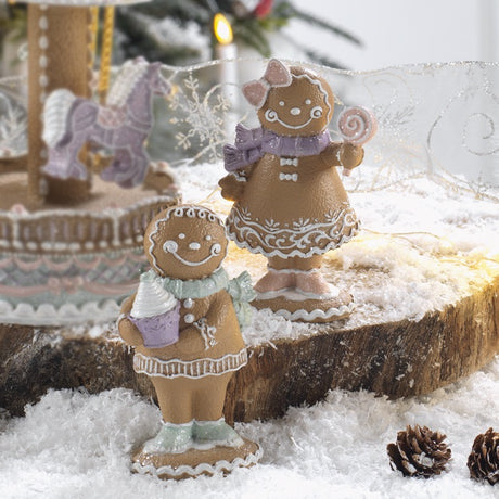 MASCAGNI CASA Bambino e Bambina di Pan di Zenzero Set 2 Pezzi 11cm Resina Decorazione Natalizia