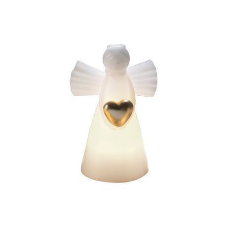 MASCAGNI CASA Candela Angelo con Fiamma LED e Cuore Oro 14cm Cera Decorazione Natalizia