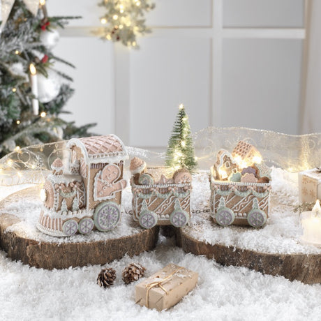 MASCAGNI CASA Treno di Pan di Zenzero con LED 18x15,5cm Resina Decorazione Natalizia