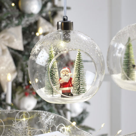 MASCAGNI CASA Pallina per Albero di Natale con Babbo Natale LED 12cm Vetro Decorazione Natalizia