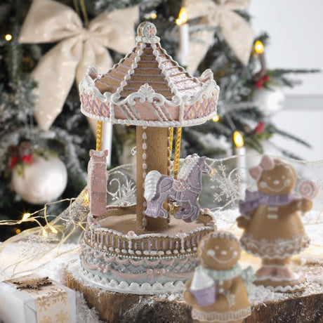 MASCAGNI CASA Carillon Giostra Pan di Zenzero 21,5cm Resina Decorazione Natalizia