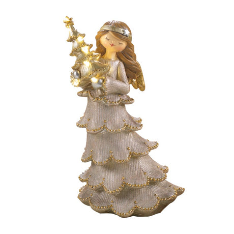MASCAGNI CASA Angelo di Natale con LED 23cm Champagne Oro Decorazione Natalizia