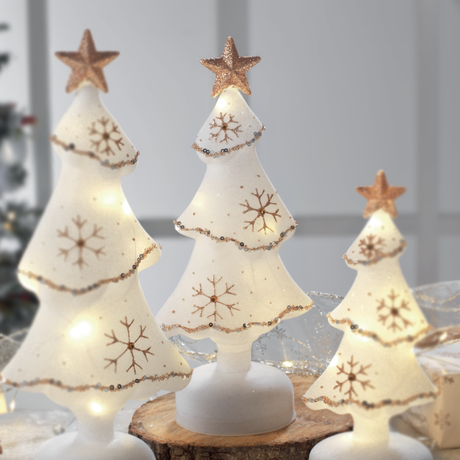 MASCAGNI CASA Abete Albero di Natale in Vetro Floccato con LED 28,5cm Bianco Oro