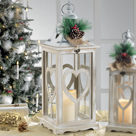 MASCAGNI CASA Lanterna di Natale Shabby Chic con Luce LED 45,5cm Legno e Metallo