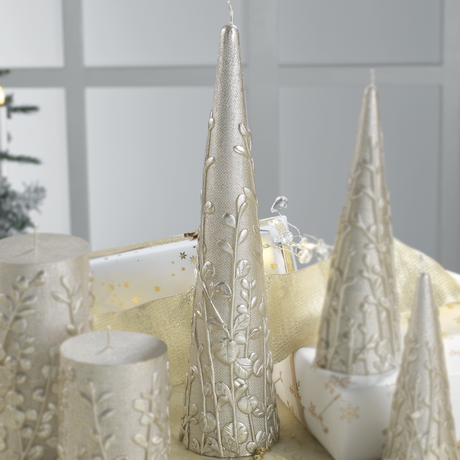 MASCAGNI CASA Candela Cono Decorata 30cm Decori in Rilievo Argento