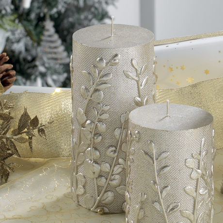 MASCAGNI CASA Cero Candela Decorata 15cm Decori in Rilievo Argento