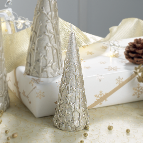 MASCAGNI CASA Candela Cono Decorata 15cm Decori in Rilievo Argento