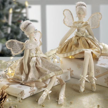 MASCAGNI CASA Angelo di Natale in Tessuto Seduto 18x39cm Beige (Assortite)
