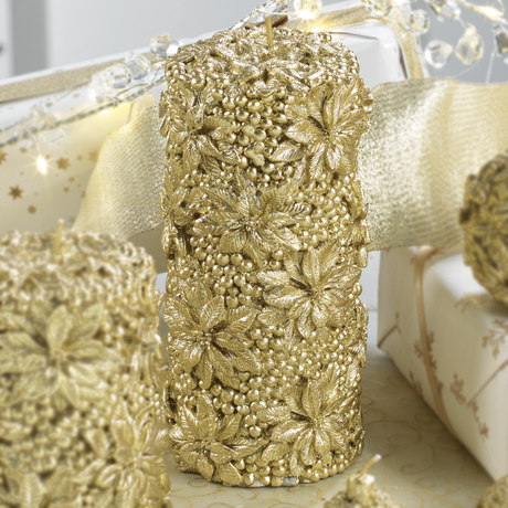 MASCAGNI CASA Cero Candela Decorata 15cm Decori in Rilievo Oro