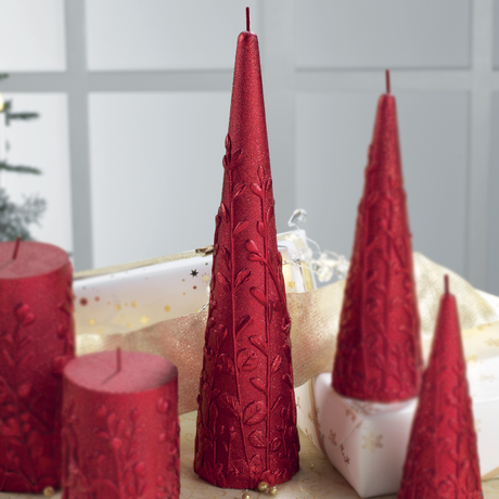 MASCAGNI CASA Candela Cono Decorata 15cm Decori in Rilievo Rosso