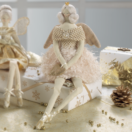 MASCAGNI CASA Angelo di Natale in Tessuto Seduto 18x39cm Beige Rosa