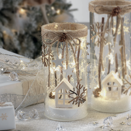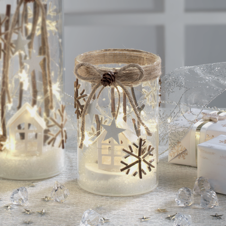 MASCAGNI CASA Bicchiere Vasetto con LED e Docorazioni Natalizie 18cm Vetro