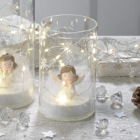 MASCAGNI CASA Bicchiere Vasetto con Angelo e LED 15cm Vetro Bianco