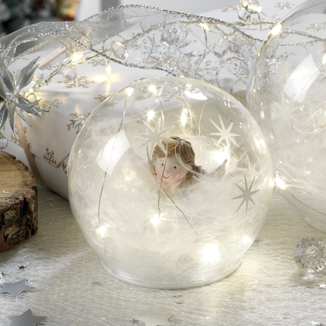 MASCAGNI CASA Sfera Palla con Angelo e LED 12cm Vetro Bianco