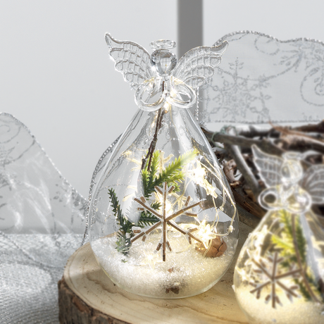 MASCAGNI CASA Angelo di Natale in Vetro con LED 15cm Decorazione Natalizia