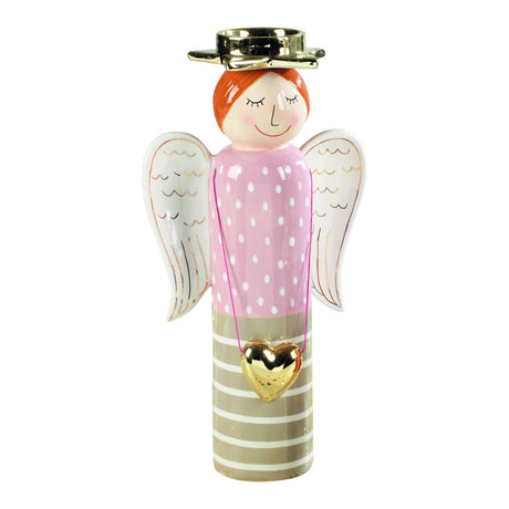 MASCAGNI CASA - Portacandela Angelo Ceramica Rosa c/ Cuore Oggettistica Natalizia H 26,5 cm