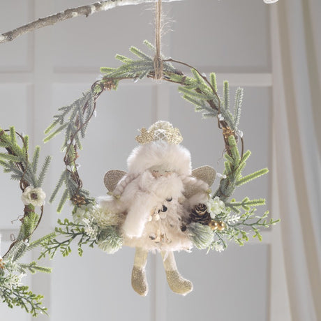 MASCAGNI CASA Pendaglio Angelo su Ghirlanda 30cm Tessuto Decorazione Natalizia